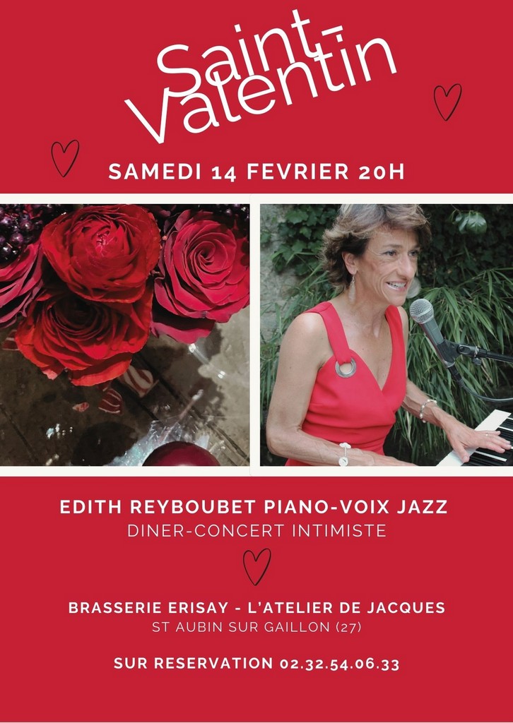 Venez célébrer cette soirée spéciale chez l'excellent restaurateur traiteur Erisay avec ce dîner animé tout en douceur par la chanteuse de Jazz Edith Reyboubet en piano-voix qui interprétera l'Amour avec un grand A!